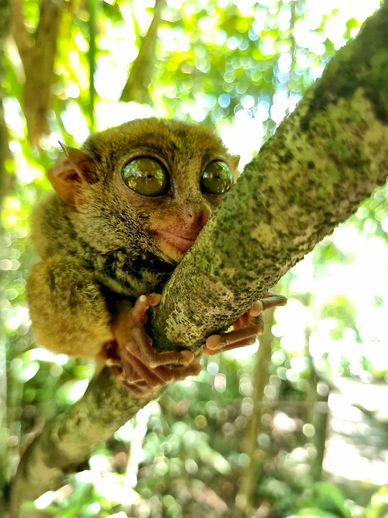 필리핀 타르시어(Philippine Tarsier, Tarsius syrichta)는 세계에서 가장 작은 영장류 중 하나로, 몸길이 3~6인치(7~15cm)에 불과한 이 초소형 원숭이는 약 4,500만 년 전부터 지구에 살아온 가장 오래된 현존 영장류 중 하나입니다. 눈이 머리 크기와 비슷할 만큼 거대하고 고개를 180도 돌릴 수 있으며, 손바닥 위