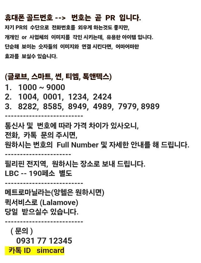 ㅡㅡㅡ 심카드 스페셜 번호 판매 ㅡㅡ