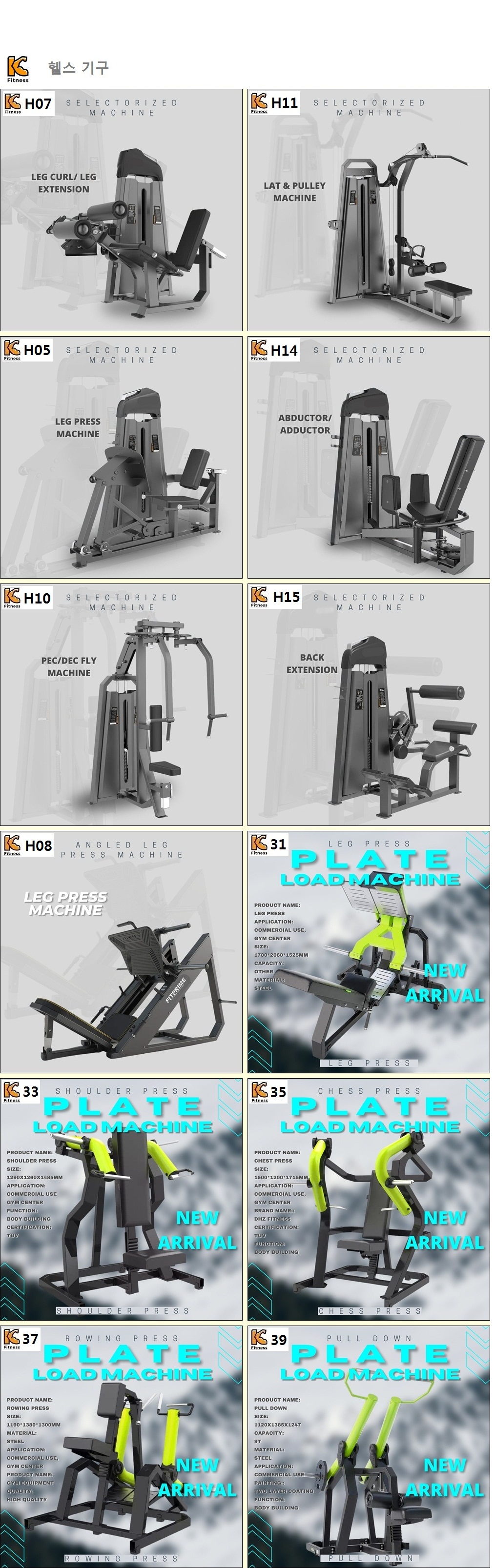 헬스기구, 홈짐세트, 스미스머신, 웨이트머신, 런닝머신, 복합운동기구등 모든 헬스기구 및 피트니스 용품들을 판매 및 배송/설치해 드리고 있습니다.